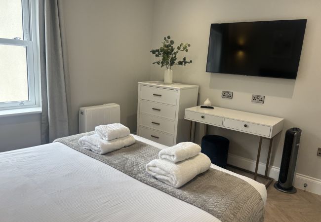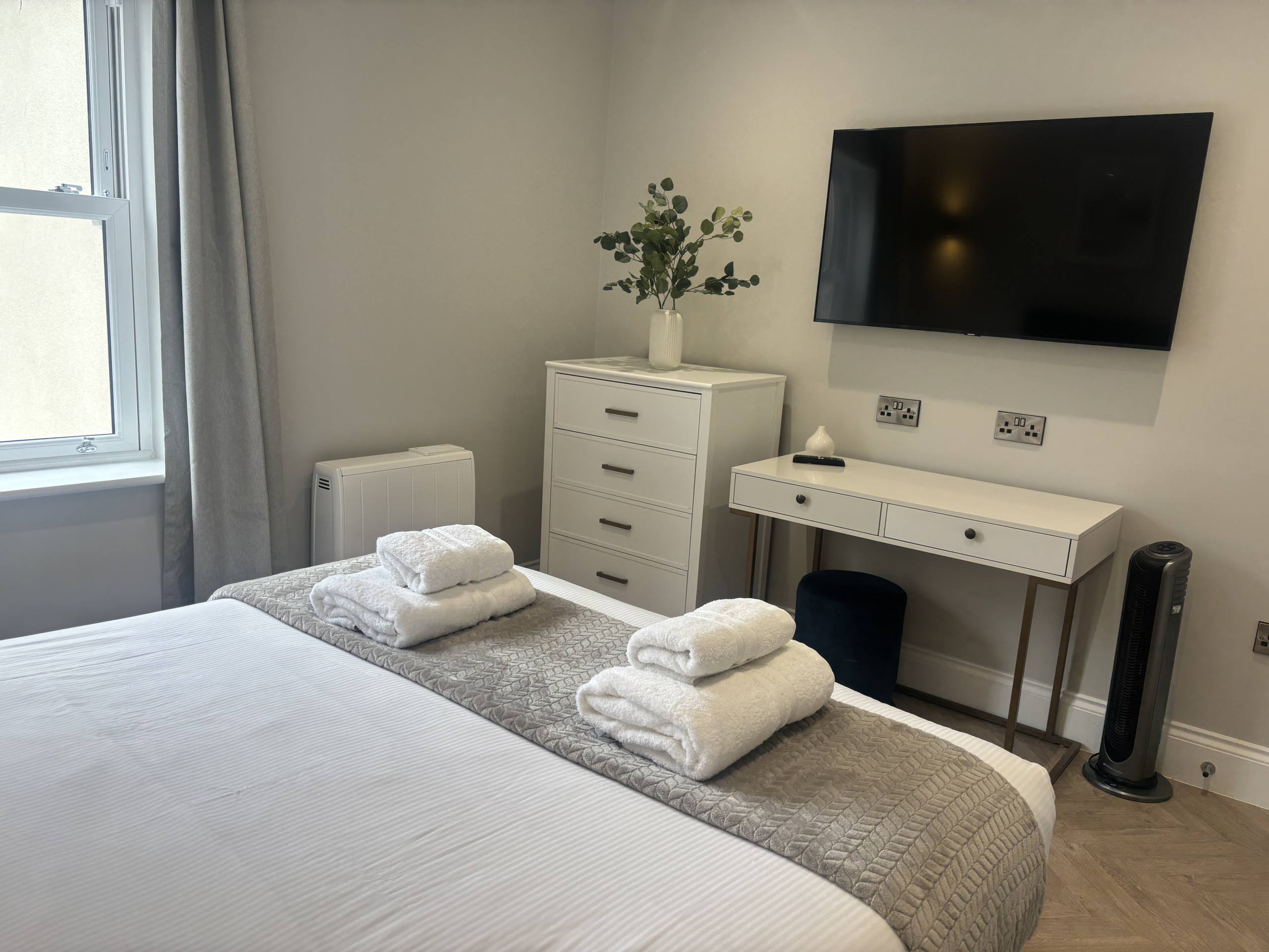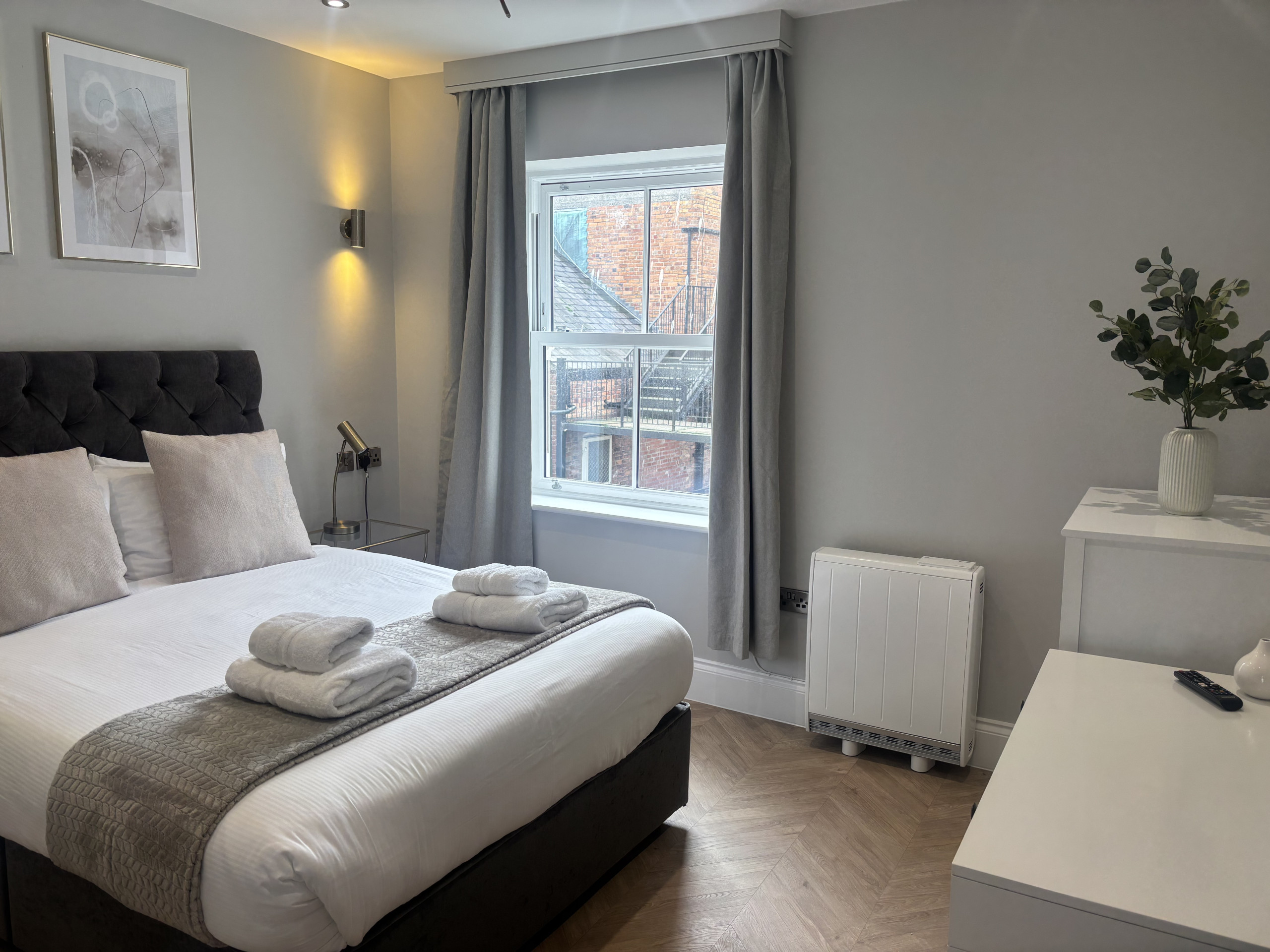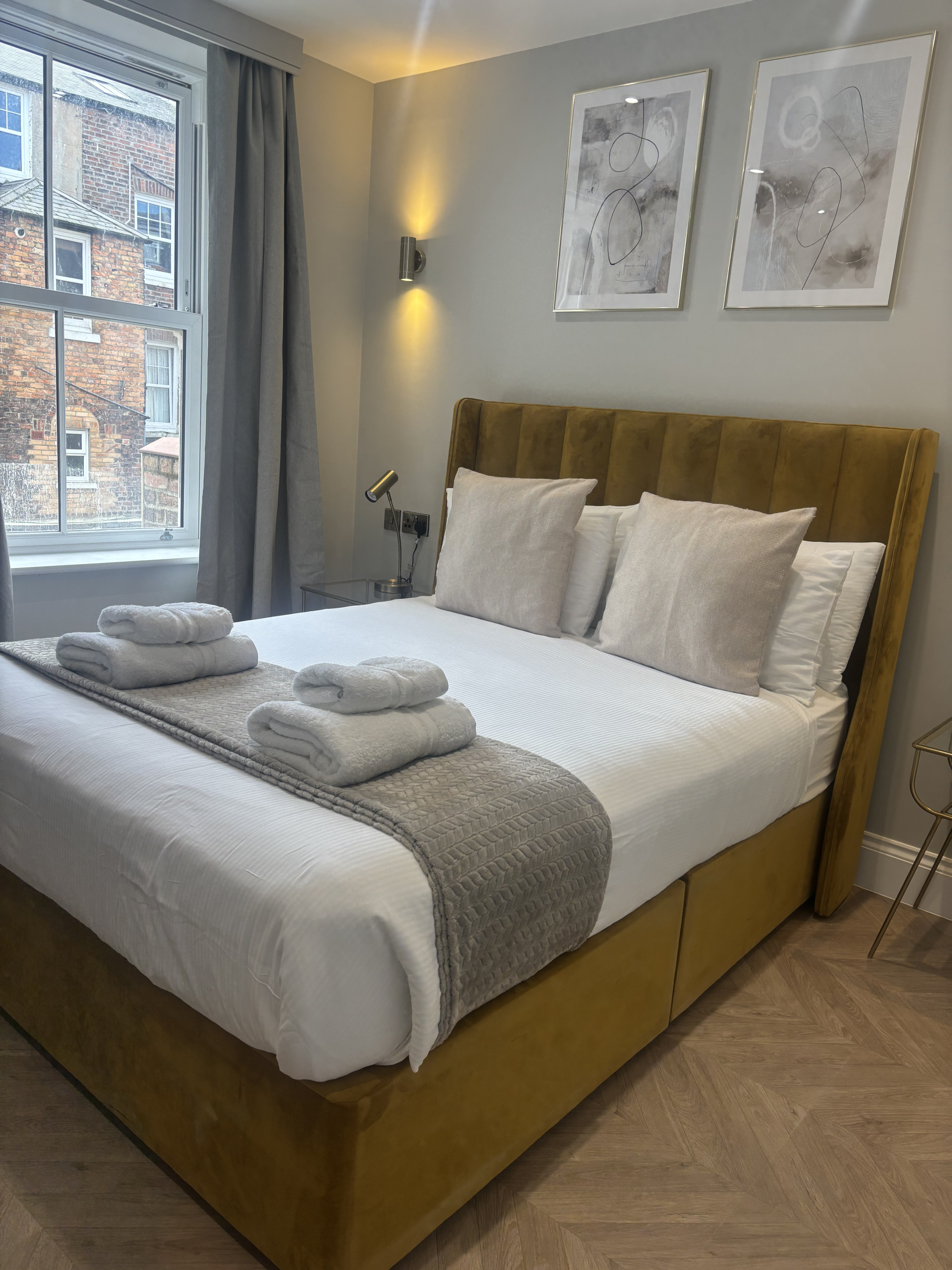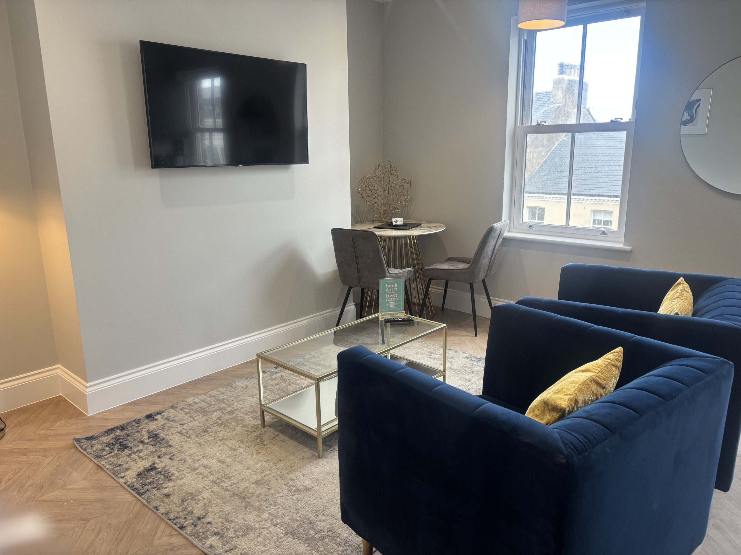 Located in The Salisbury, our award-winning apartments in the heart of Scarborough town centre. This impressive Deluxe 1 bedroom apartment is nestled away on the upper levels, this stunning apartment will wow you upon arrival. The stylishly furnished open plan lounge connects with a fully-equipped dining area and a modern, fitted kitchen. The light and airy lounge area features a 50” Smart flat-screen TV for your entertainment and in the kitchen, a Nespresso coffee machine is provided to make your very own barista style coffee!